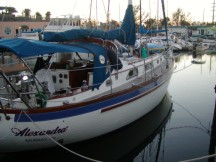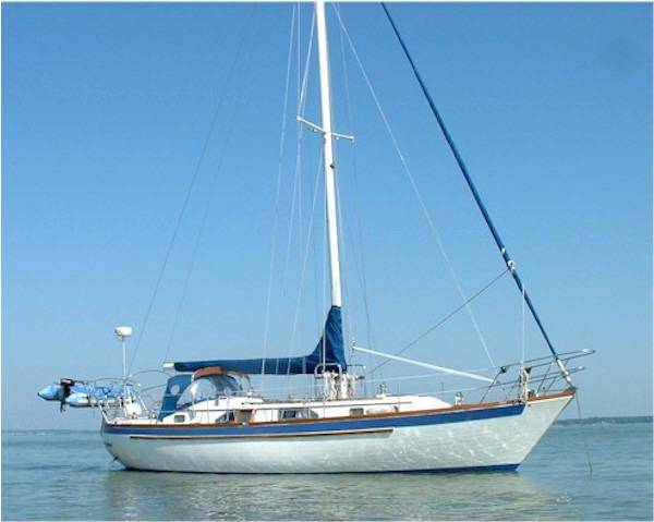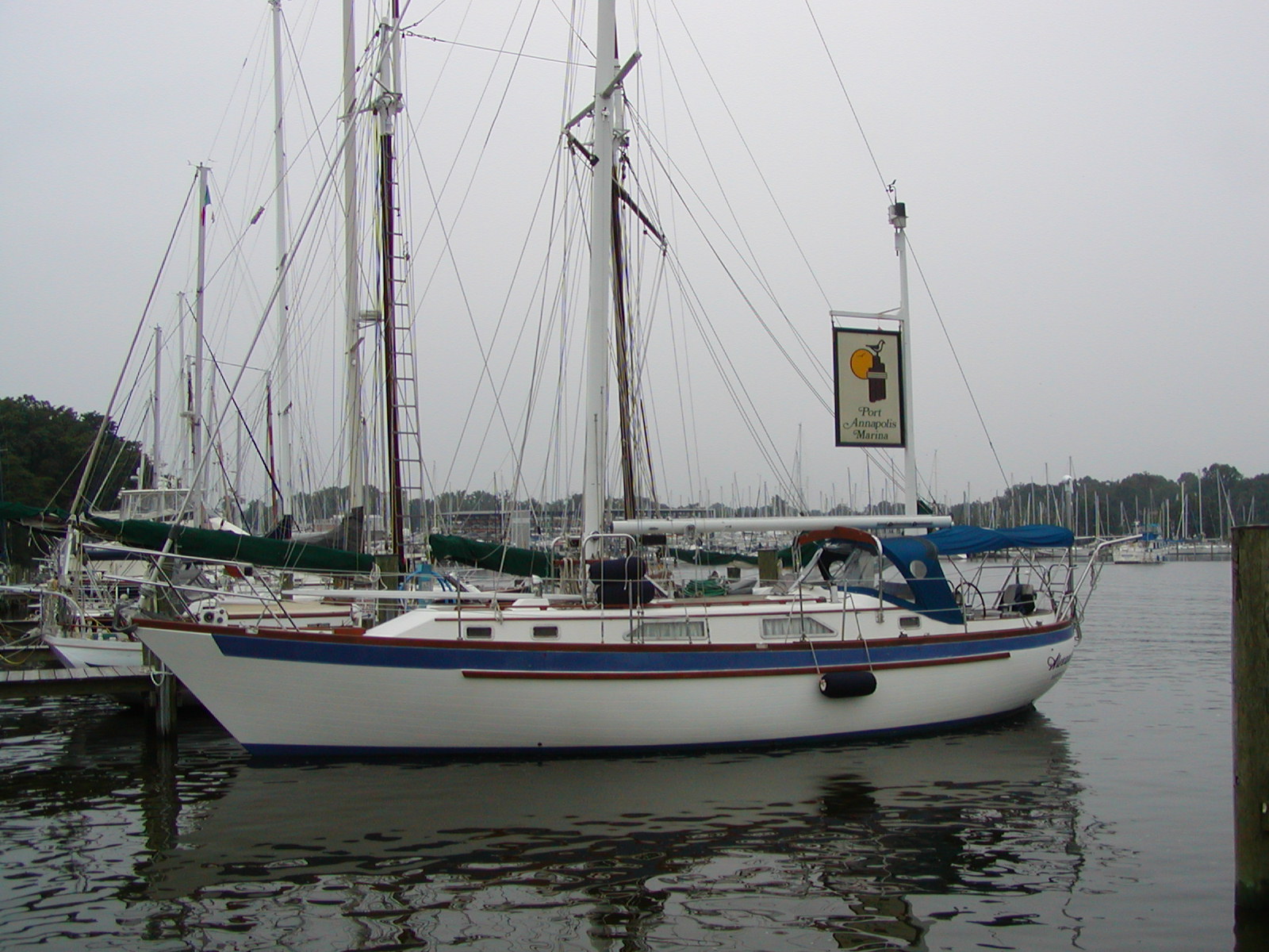 She is a double-ended, heavy-displacement, blue water cutter-rigged sailboat.