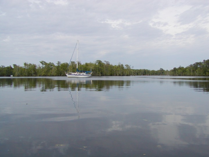 At anchor in Bucksport, SC on the Waccamaw River. April 2006.