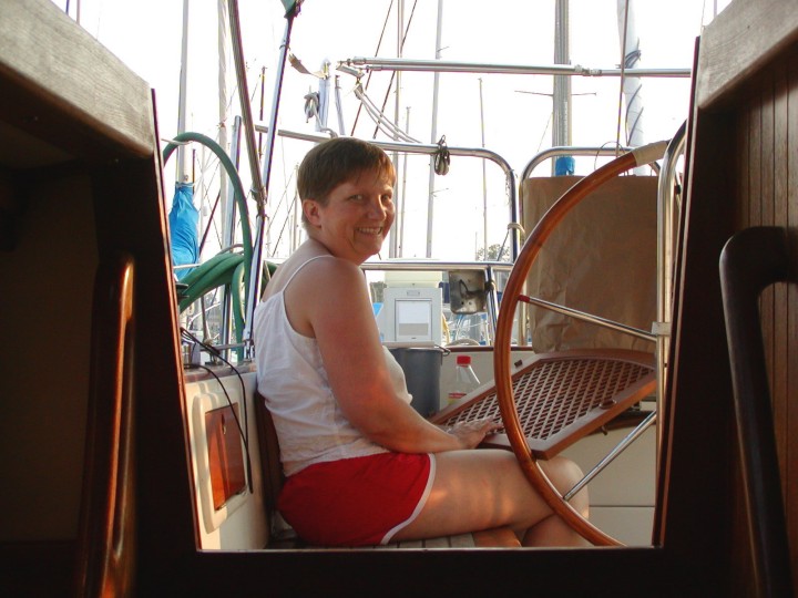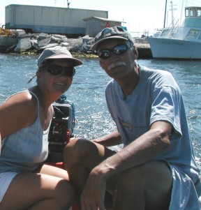 John and Cindy in dinghy at Stock Island, FL. March 2006