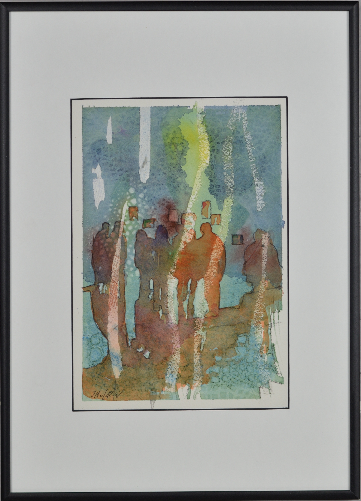 “Counterplot”, Watercolor and Pastel, Framed 13×16