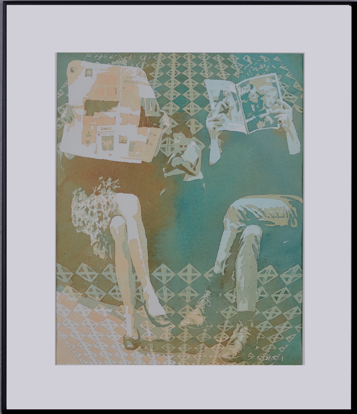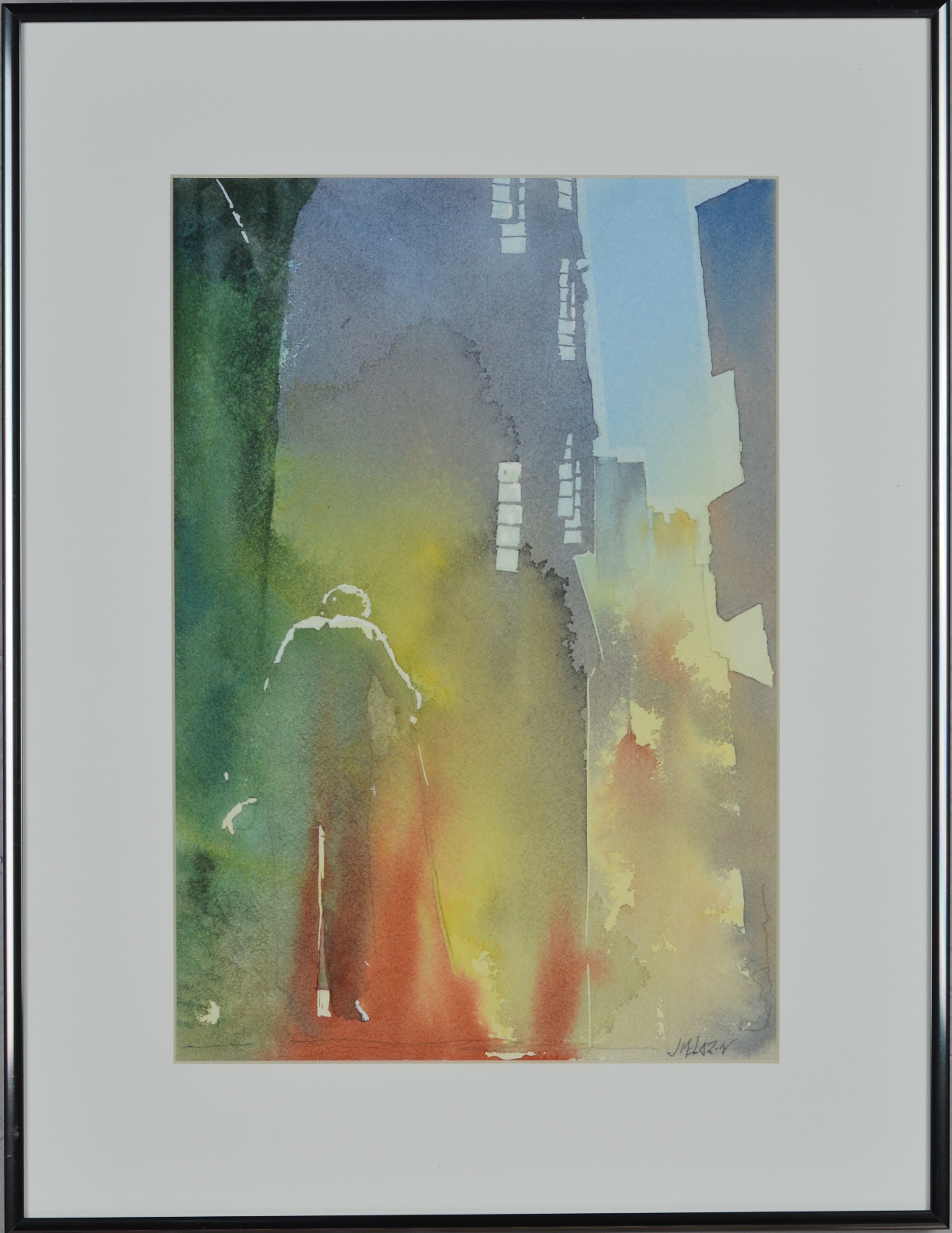 “Between the Lines, Three”, Watercolor, Framed 19×22 Series: The Space Between Us #10