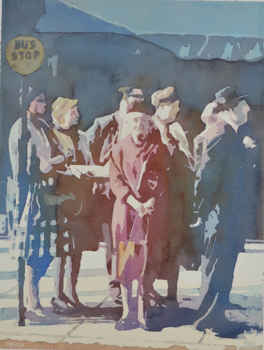 When You Know You Know Oct 29, 2025 | twodoves blog “W.Y.K.Y.K” Watercolor by John McLaren Art 9 x 12 For Sale at the PAPA Gallery SHE knows the bus WILL come.